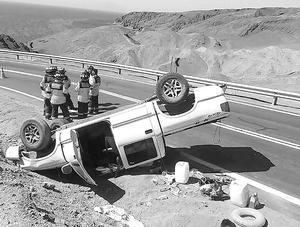 Chofer de camioneta resultó herido tras volcar camino a Juan López