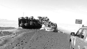 Camión con concentrado volcó en la ruta que une Calama y Sierra Gorda