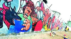 Voluntarios se unieron para limpiar el mural pintado en sector Las Petroleras
