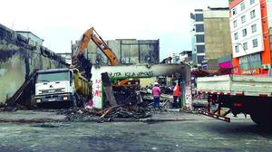 Remueven escombros de la farmacia quemada en noviembre