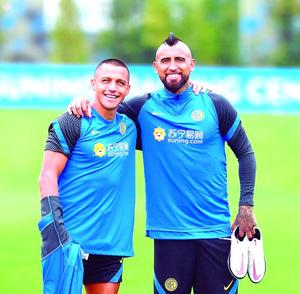 Sánchez recibió con un abrazo a Vidal en su primer día con el Inter de Milán