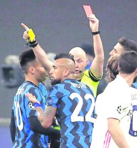 Vidal fue expulsado en nueva caída del Inter, que quedó en peligro