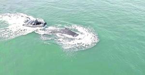 Ballena jorobada recorrió kilómetros enredada a un bote en playa de Hornitos