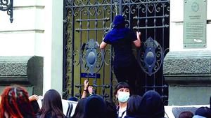 Cinco detenidas por causar desórdenes en ataque a edificio de la municipalidad de Santiago