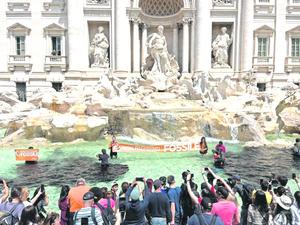 Activistas tiñeron de negro las aguas de la Fontana di Trevi