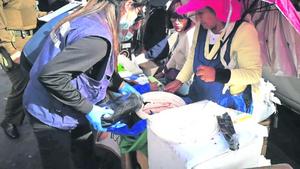 Decomisan 70 kilos de alimentos a comerciantes ambulantes en sector de la vega