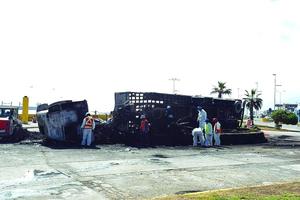 Camión que transportaba concentrado de zinc volcó y se incendió en Av. Salvador Allende